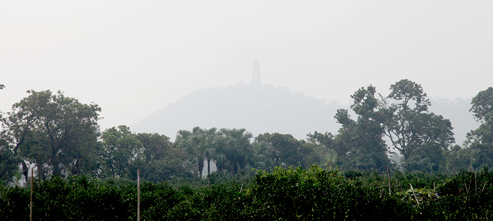 來到廣東新會(huì)的茶坑村,遠(yuǎn)眺觀望,云霧間有一座忽隱忽現(xiàn)的塔,陽(yáng)光甚好時(shí),其中的紋絡(luò)清晰可見。