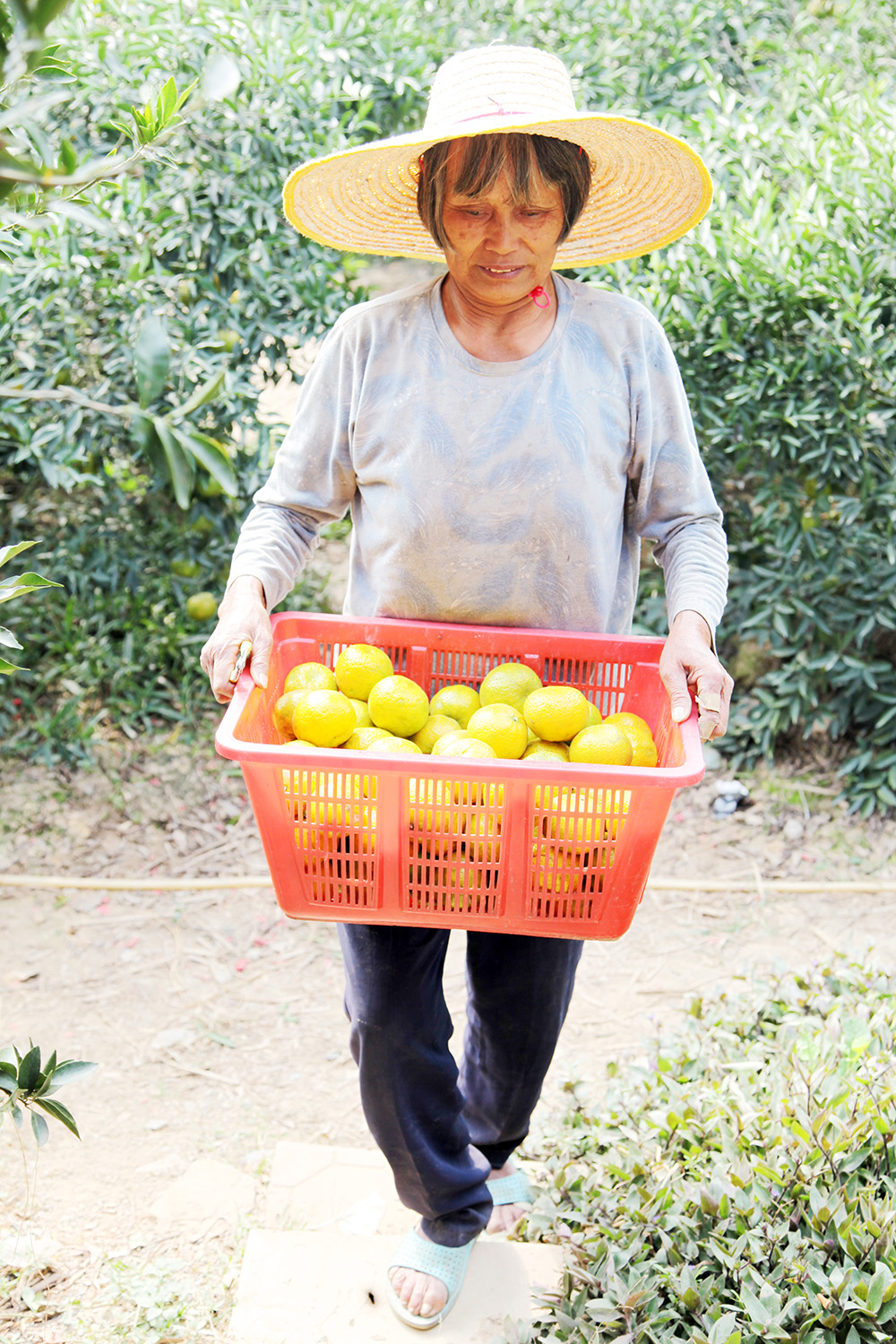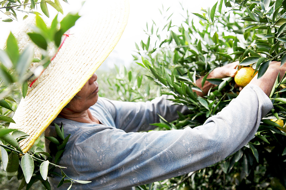 看到了全紅的果,何嬸就會(huì)笑著摘下一個(gè),說:“嘗嘗,好吃的呢,這個(gè)成熟度不酸,酸也當(dāng)開胃吃吃,皮別開爛咯!”還貼心的開好果遞過來,何嬸自己試了一塊,還小聲嘀咕了下,嗯,不酸。