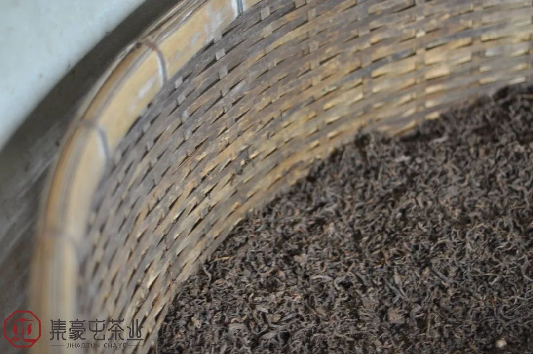 發酵過程中經過反復不斷地翻動,茶葉會分泌出一些果膠,因為果膠是比較粘稠的,所以有些茶葉就粘在一起形成結塊。等茶葉發酵完畢后,茶廠會把這些結塊揀出來,能解開的則放回到茶葉堆里,而剩下解不開的結塊體,如果強行解開的話會將茶葉弄碎,所以就單獨放置存放。