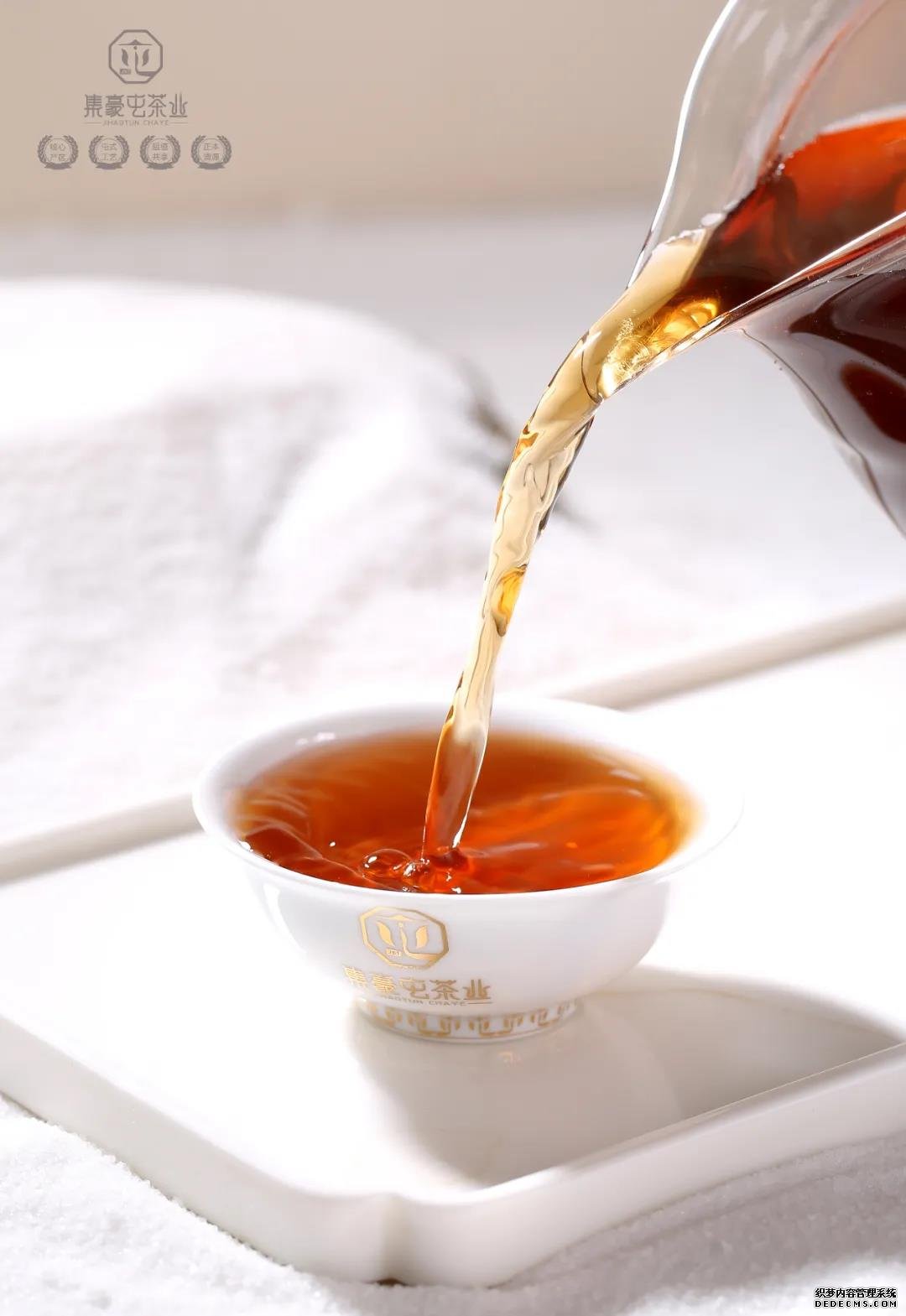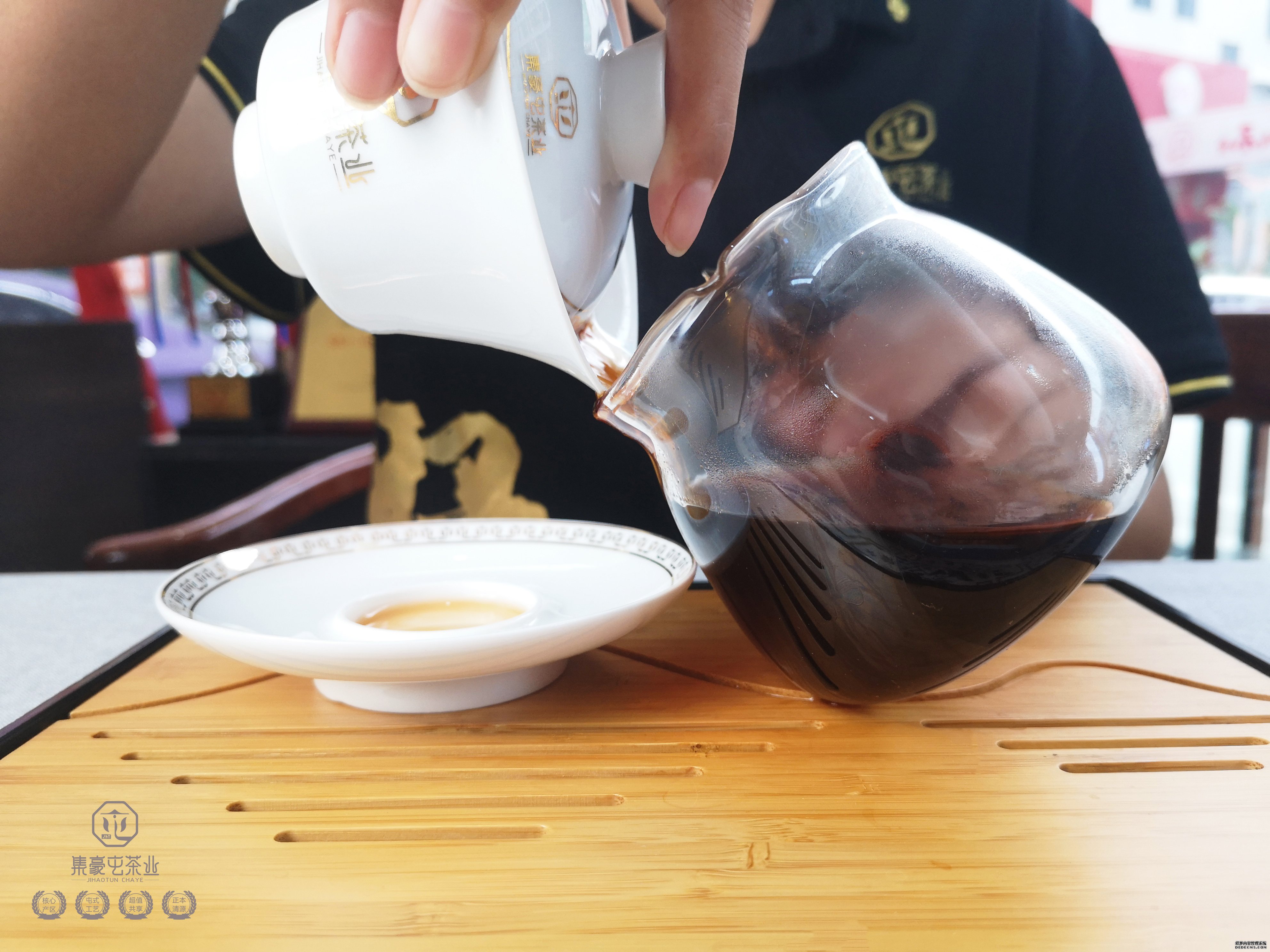 將茶湯倒入公道杯中,再將其緩緩倒入品茗杯中,這紅濃明亮的湯色,期待值滿滿~