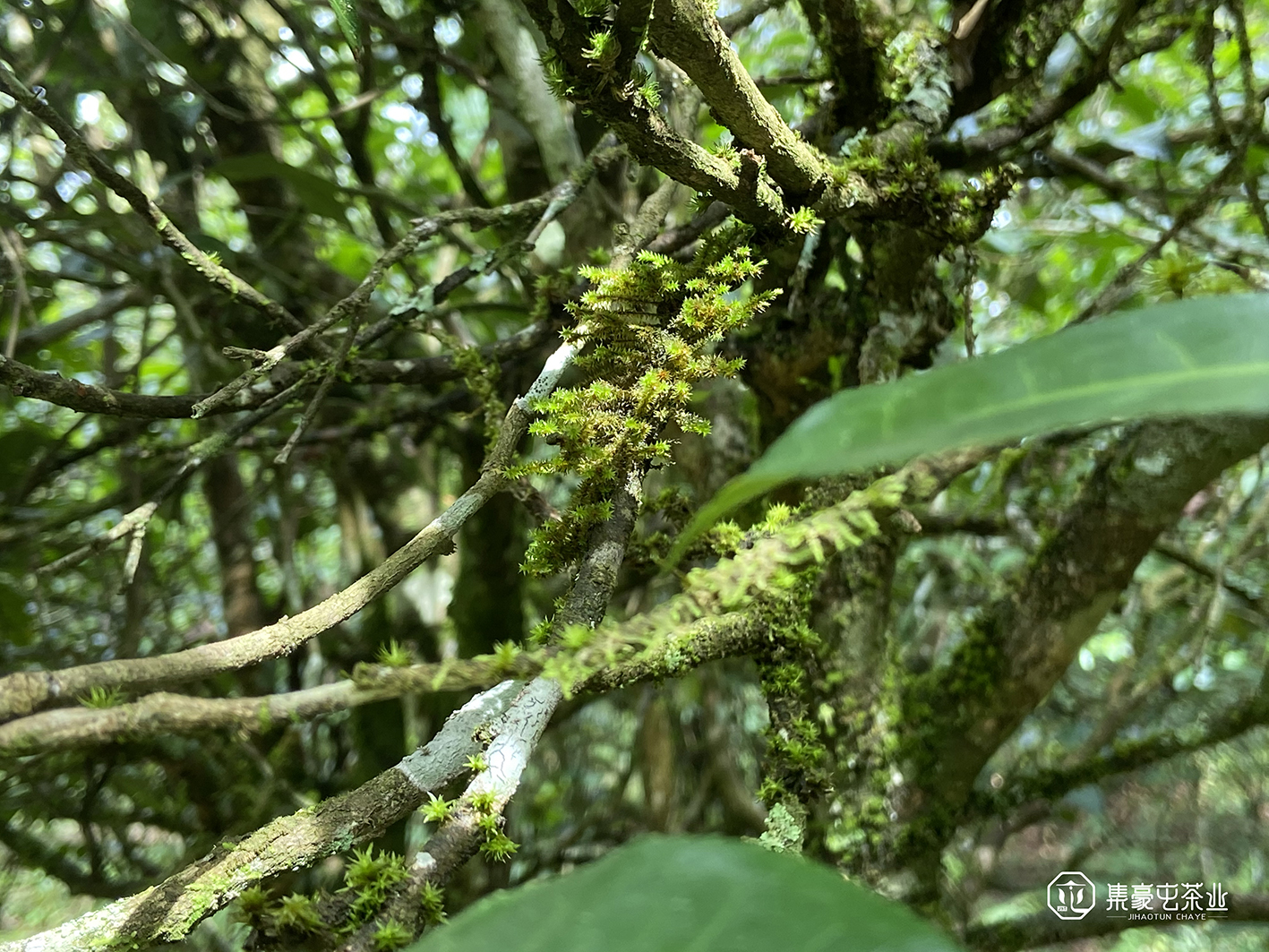 扎根于原始森林的「高桿古樹」,主桿高,沒有旁枝,只有樹冠頂部有一些枝葉,因此產量非常稀少。除了自然因素外,「高桿古樹」的樹形攀爬時無法借力,采摘難度較大,要當地很有經驗的茶農才敢爬上去。