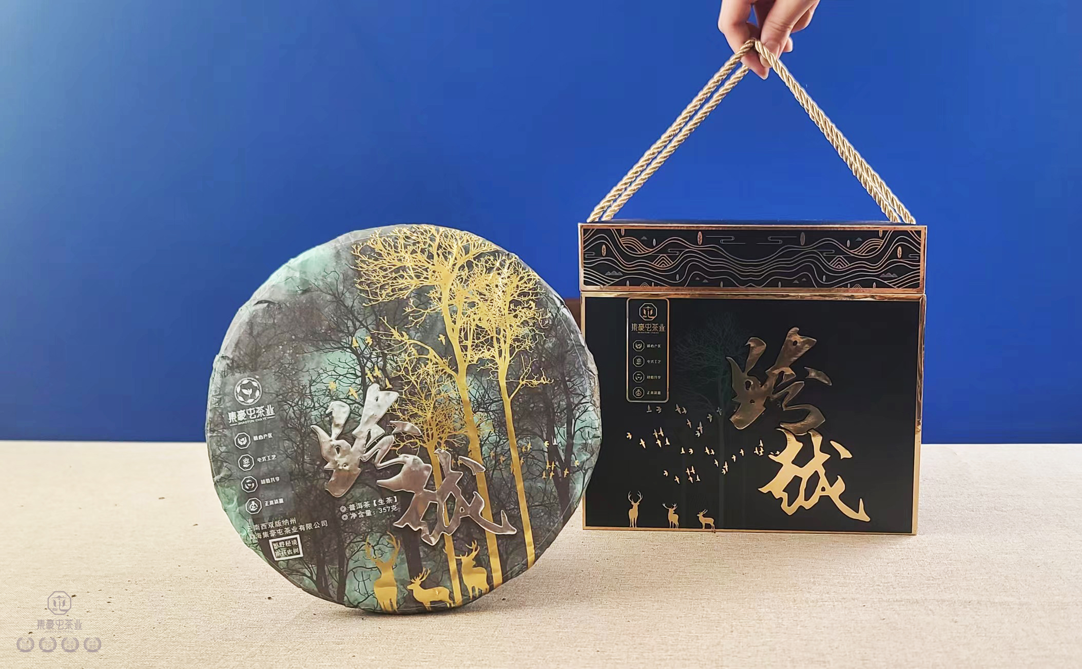 踏進這片原始秘境,各種千姿百態的古樹映入眼簾,令人目不暇接。燙金工藝勾勒的高桿古樹,高高挺立,如同戰士一樣守護著這片深山密林,保護著一方凈土。