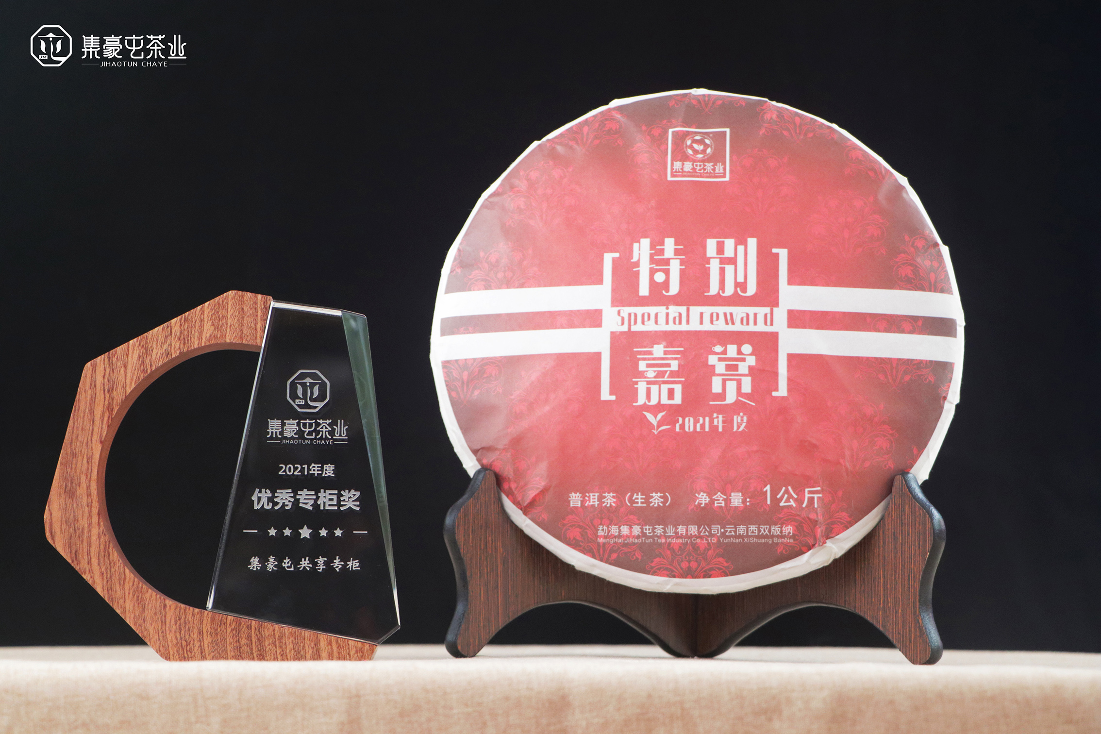 一分耕耘,一分收獲。2021年,在各位簽約客戶的努力付出下,推動公司的快速發展。漫漫征程中的重重考驗,磨礪我們百折不撓的品格。為肯定成績,激發熱情,集豪屯茶業對2021年度榮獲品牌貢獻獎、優秀專柜獎的共享專柜進行表彰激勵!
