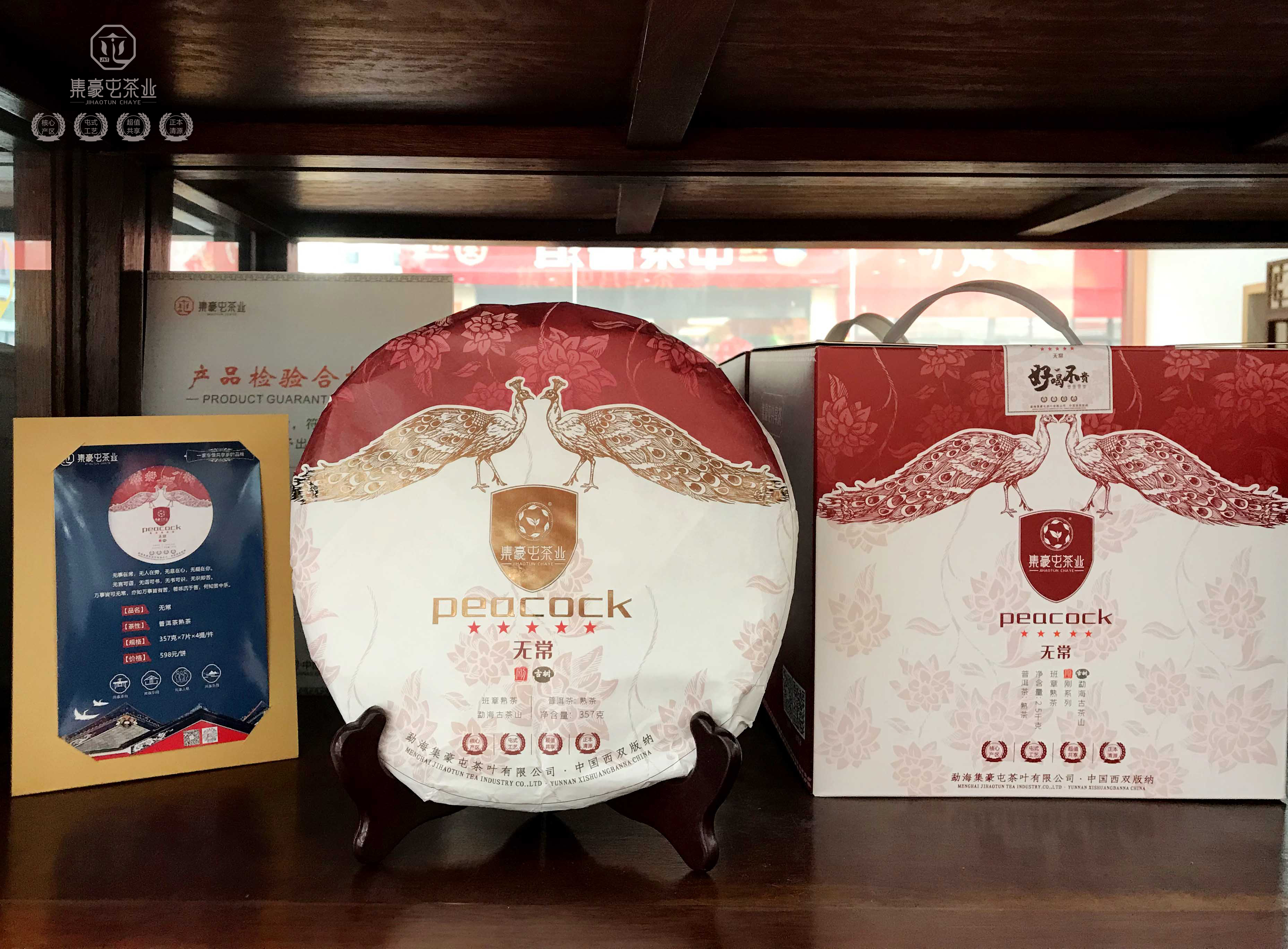 經店員詳細介紹,我知道了此款茶品的名字:“無常”。原來是集豪屯2019年的新品,采用純班章、純古樹的原料制成,常年喝茶的我,聽到班章二字,也就迫不及待的想嘗試“紅色孔雀”的味道了。