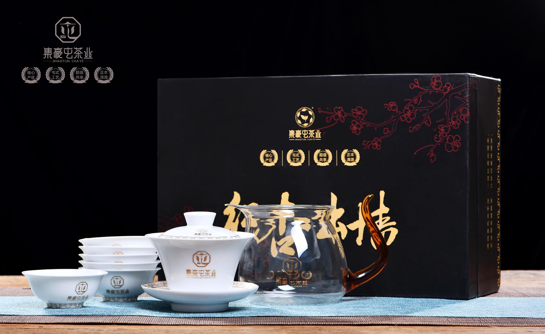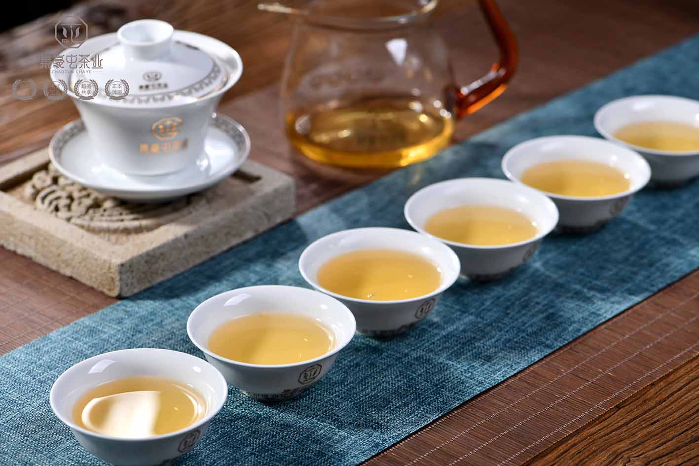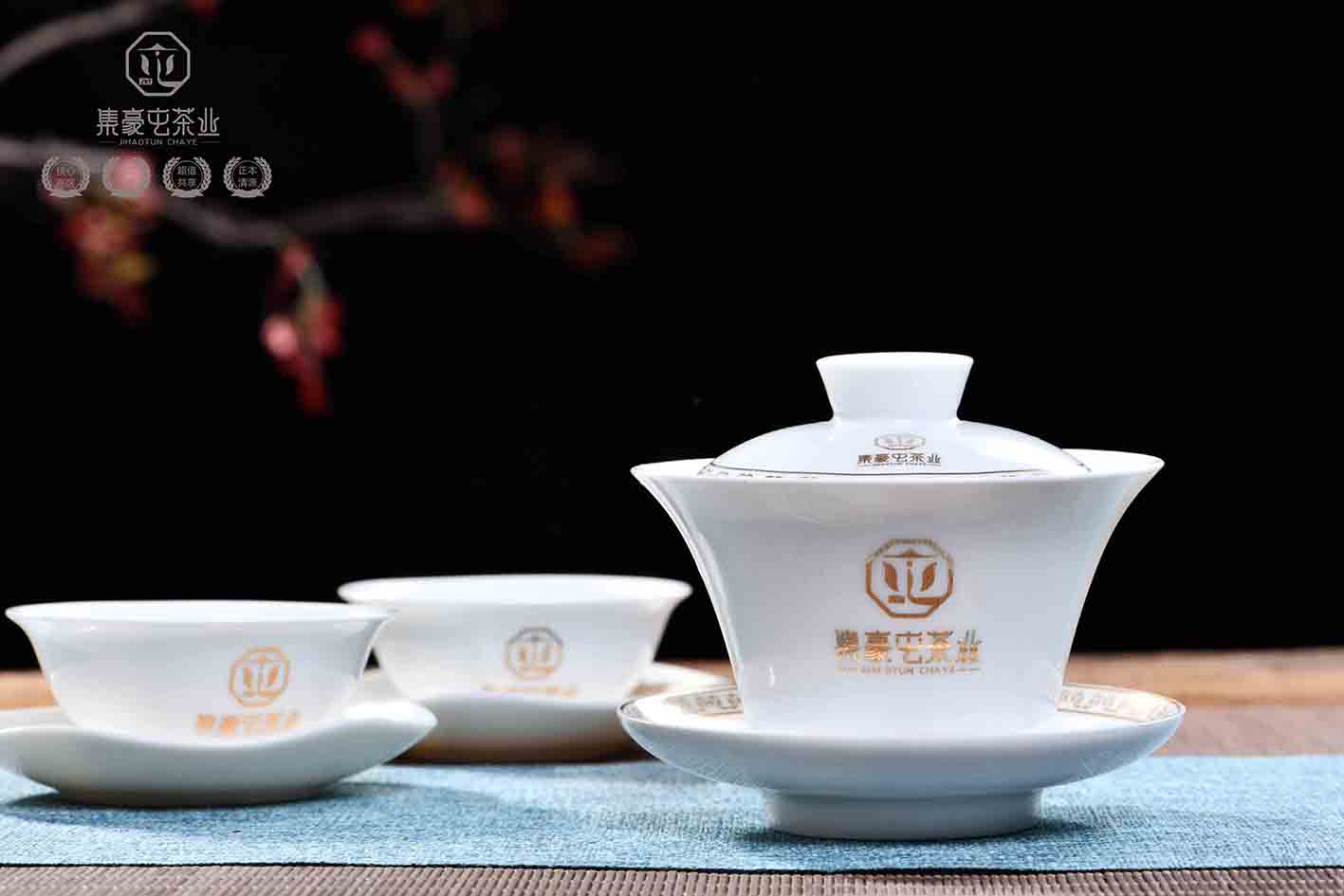 集豪屯的品茗杯,采用景德鎮白瓷所制,光滑明亮的白瓷,能使其在品茗茶湯時更好地看到每一泡茶的變化,品茶觀茶兩不誤。
