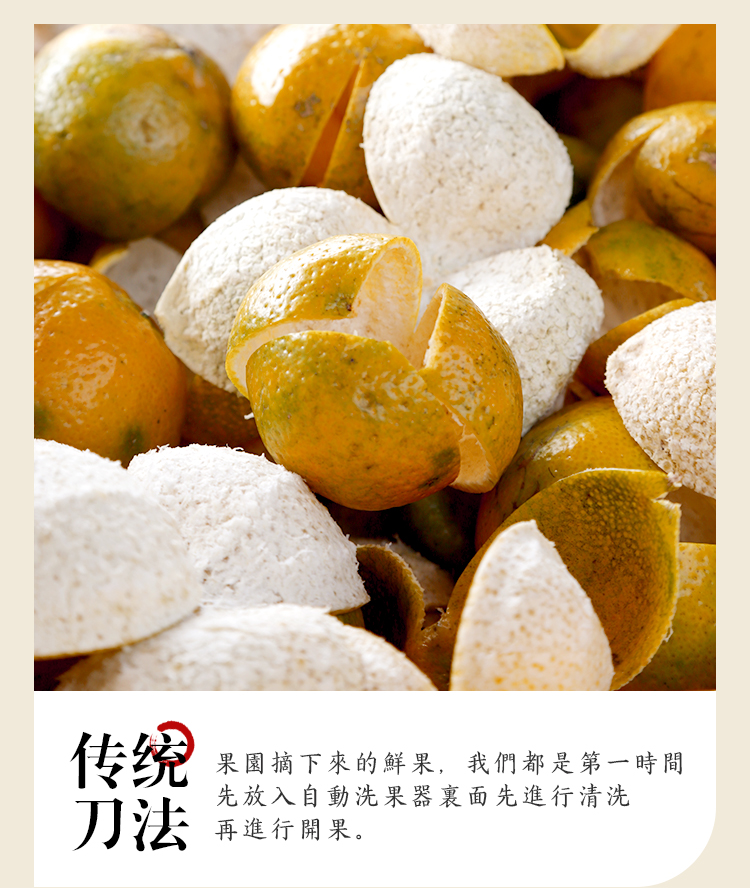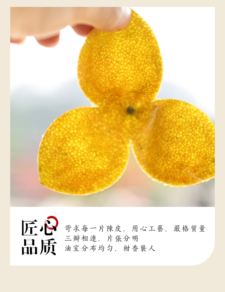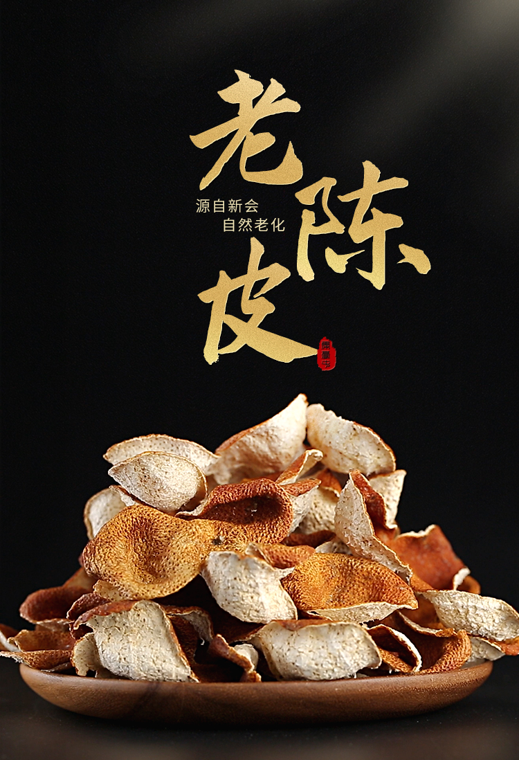 核心產區一線茶坑村的何伯,在見到他的時候,正低頭在翻果皮,那雙帶著歲月的手,熟練的撿起一塊已經有點軟的果皮,根據果皮的中心點,輕輕的按下,一片果皮,就翻好了。