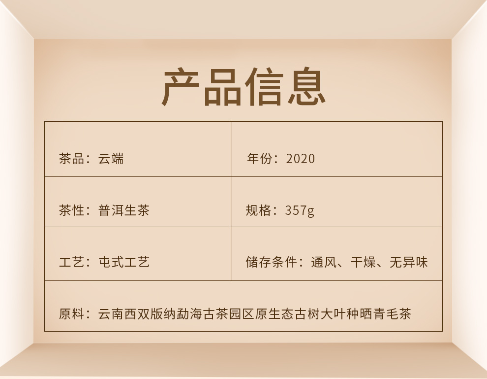 原料信息:云南西雙版納勐海古茶園區原生態喬木大葉種曬青毛茶