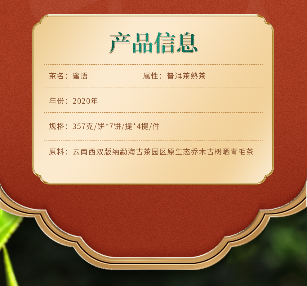 原料信息:云南西雙版納勐海古茶園區原生態喬木大葉種曬青毛茶