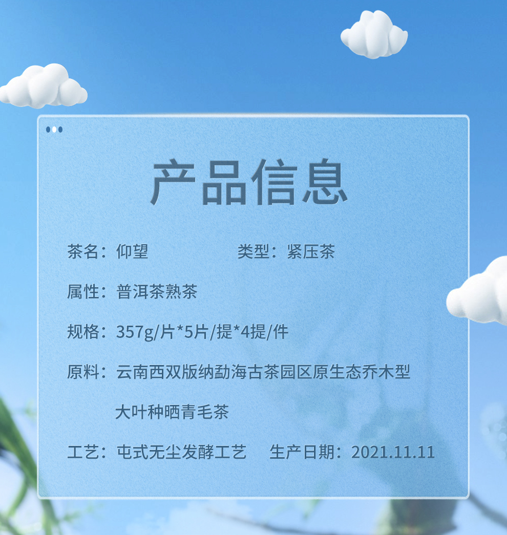 原料信息:云南西雙版納勐海古茶園區原生態古樹大葉種曬青毛茶