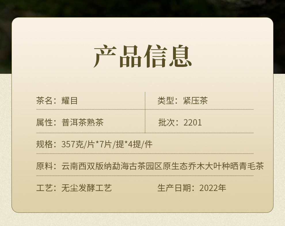 原料信息:云南西雙版納勐海古茶園區(qū)原生態(tài)古樹(shù)大葉種曬青毛茶