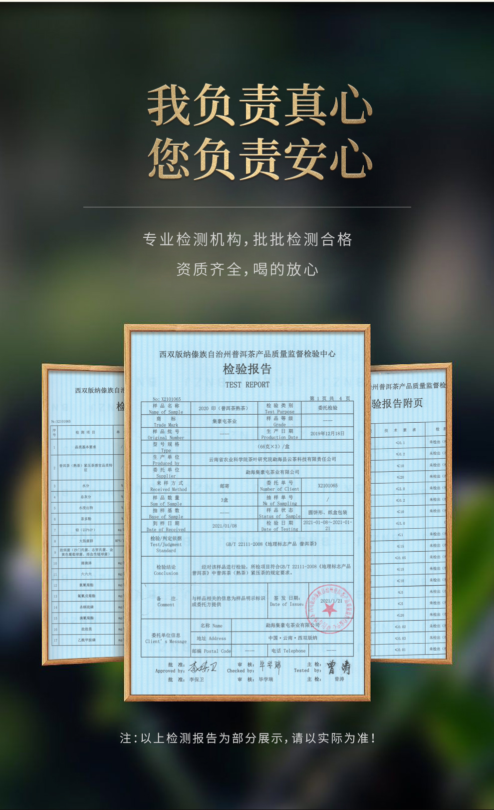 原料信息:云南西雙版納勐海古茶園區原生態喬木大葉種曬青毛茶