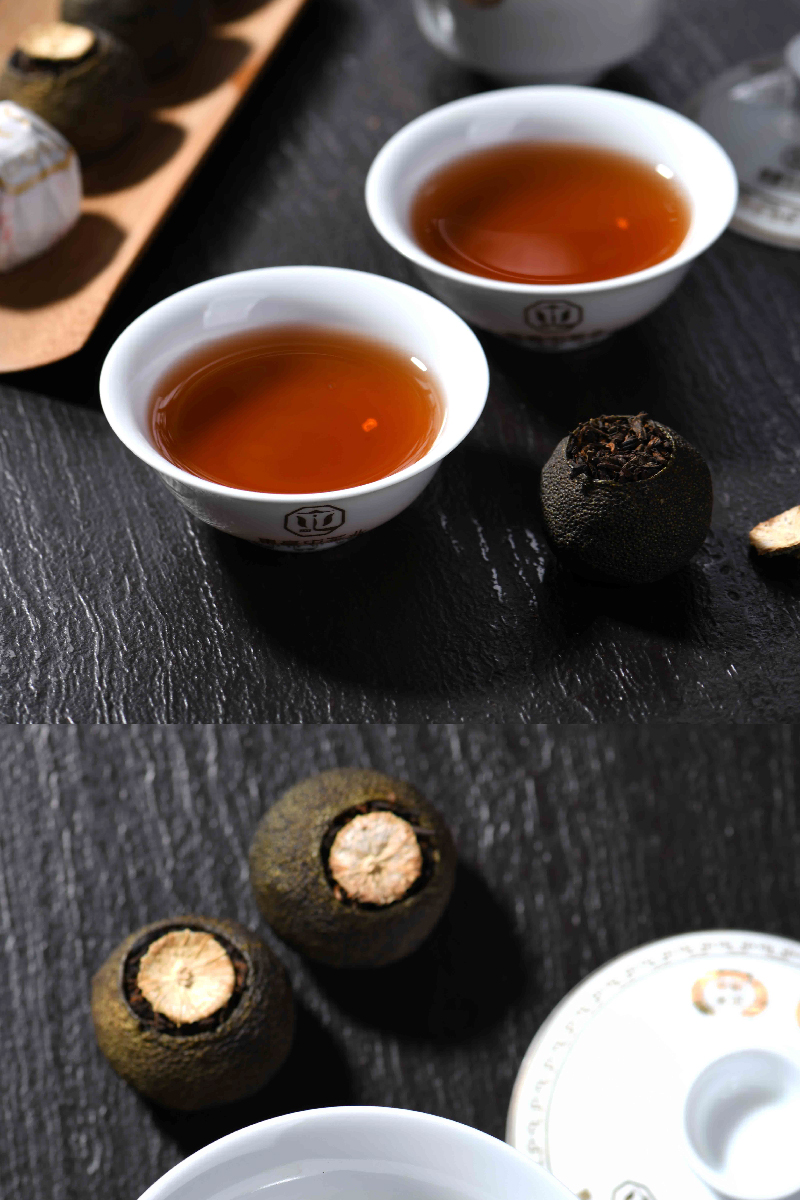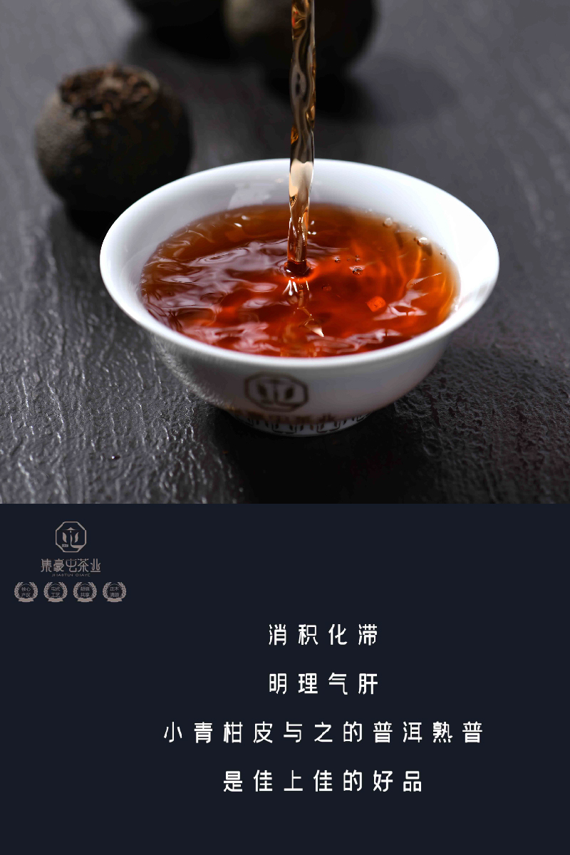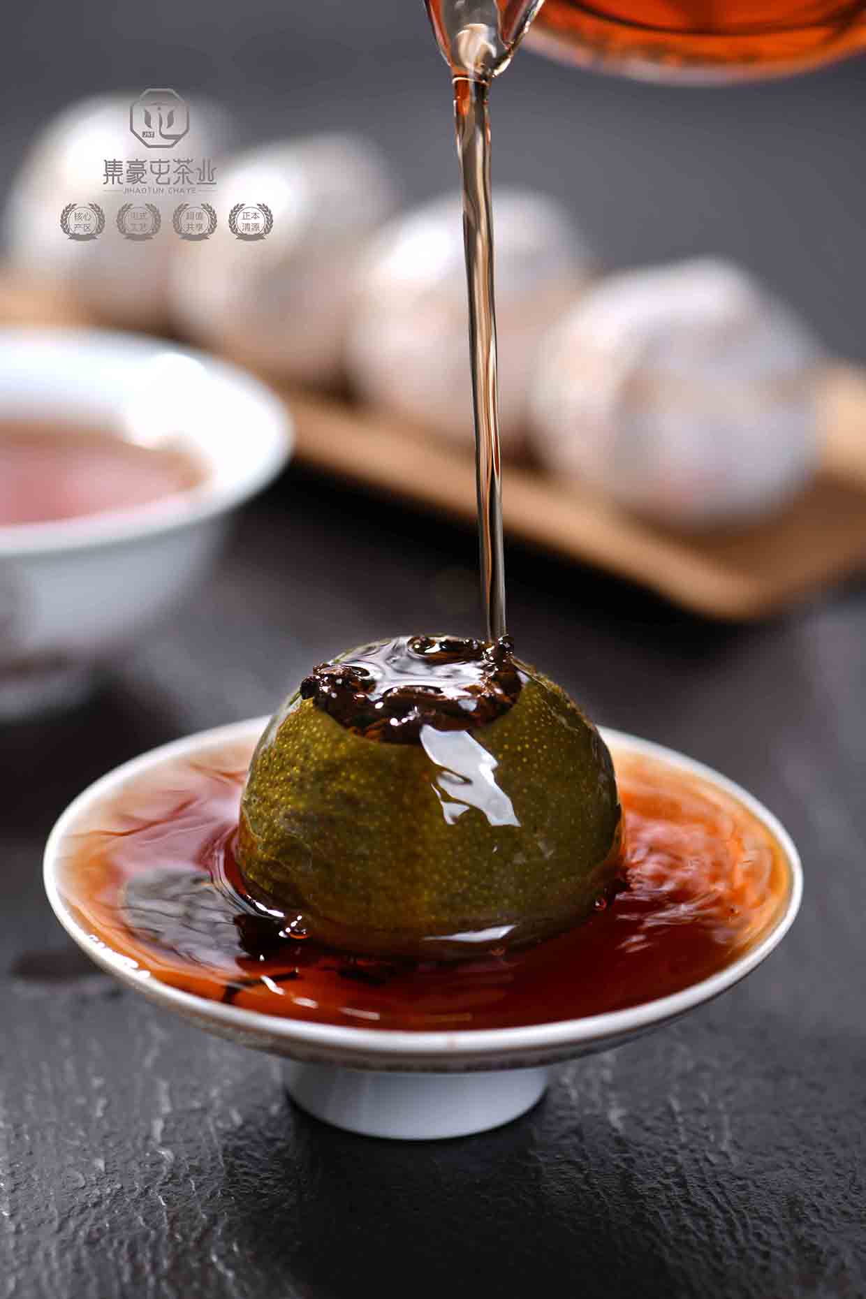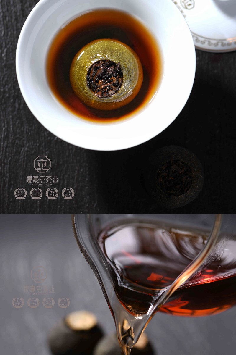 當廣東新會柑皮遇上云南宮廷普洱,賦予了小青柑獨特的藥理價值,小青柑是以普洱熟茶為主體的再加工茶,開水注入,小青柑的清香加上宮廷普洱的醇厚,給茶友們帶來更加豐富的口感。