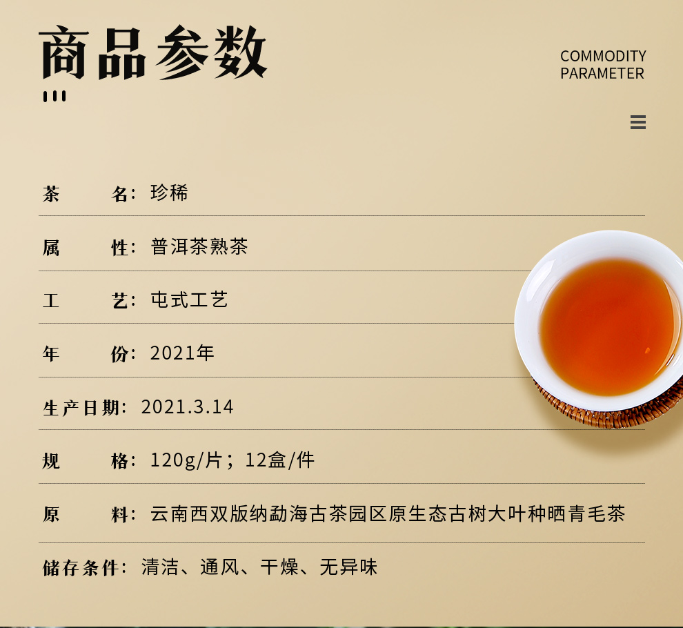 原料信息:云南西雙版納勐海古茶園區原生態喬木大葉種曬青毛茶